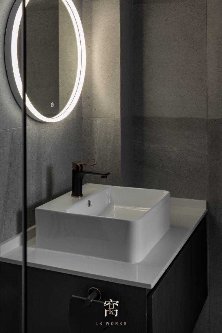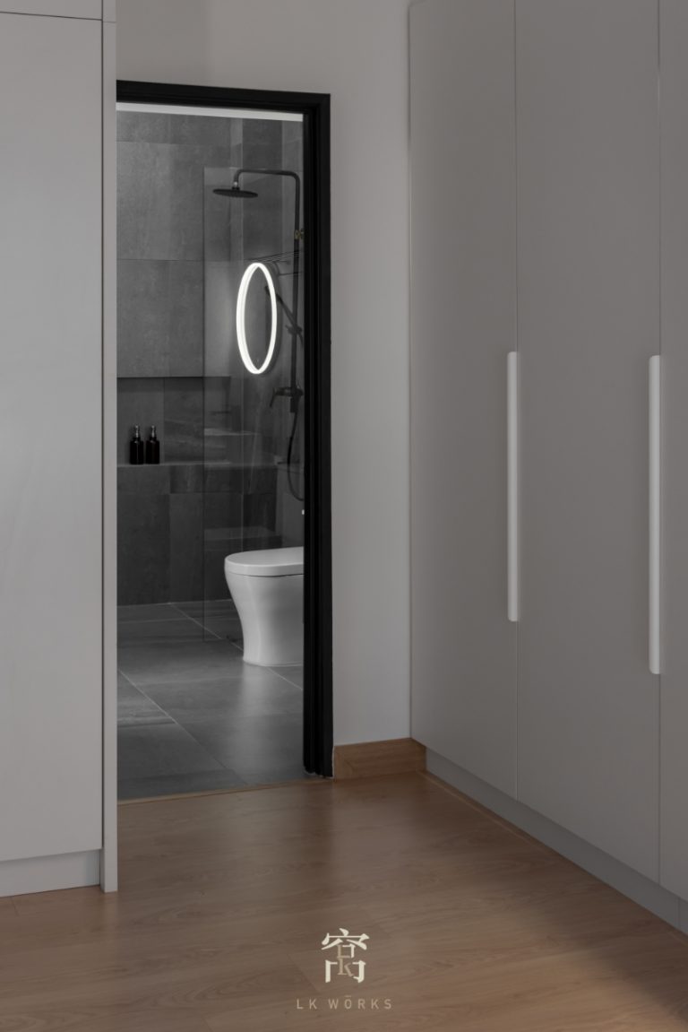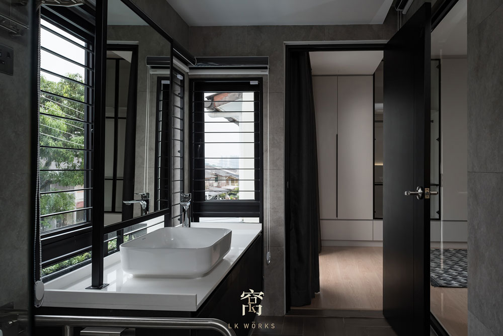 採光式浴室使亞灰色磚牆看起來更有質感。