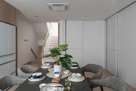 主色調是灰白色和灰色,運用橡木與自然光下使環境變得飽和,寬闊。